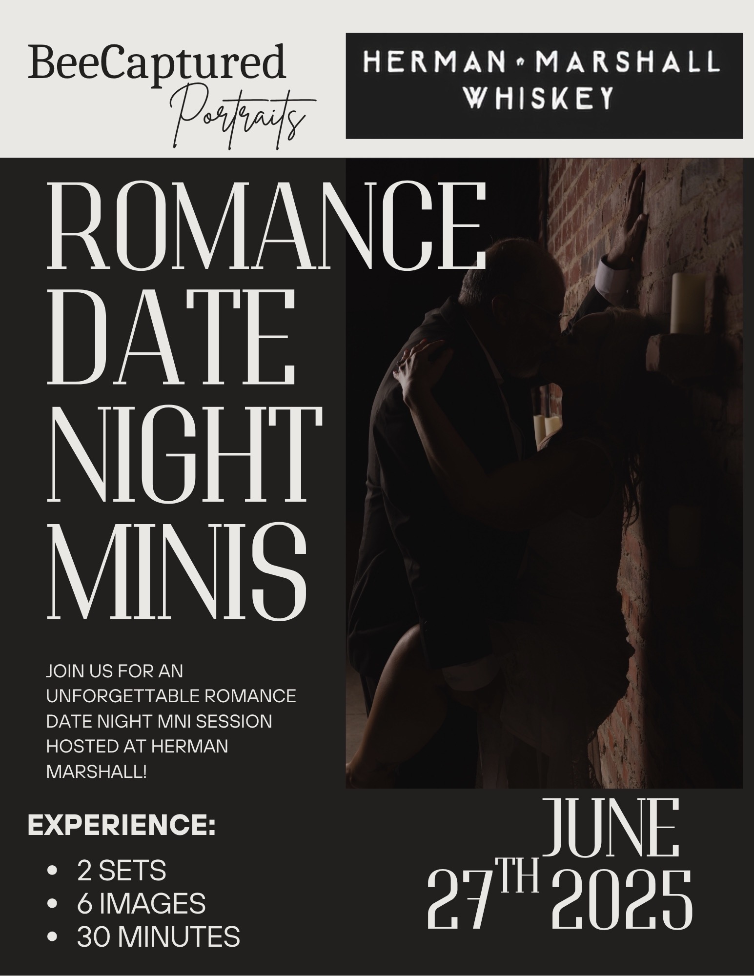 Step into a scene of timeless romance at Herman Marshall Whiskey Tasting Room, where vintage charm meets modern love. 20 minute session: 2 unique sets, 5 stunning edited images, a soeakeasy-inspired vibe Additional edited photos and drinks are available for purchase.