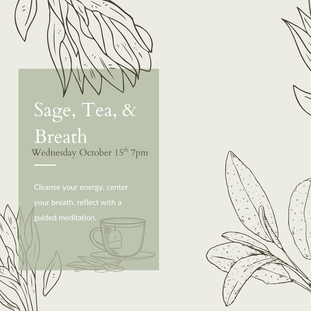 Wednesday October 15th @ 7pm An evening of cleansing, grounding, and reflection. You’ll begin with a personal energy cleanse, sip on soothing tea, and be guided through pranayama practices to center the mind and body. The session will close with a calming guided meditation to leave you feeling clear and balanced. $10 October 15, 2025 […]