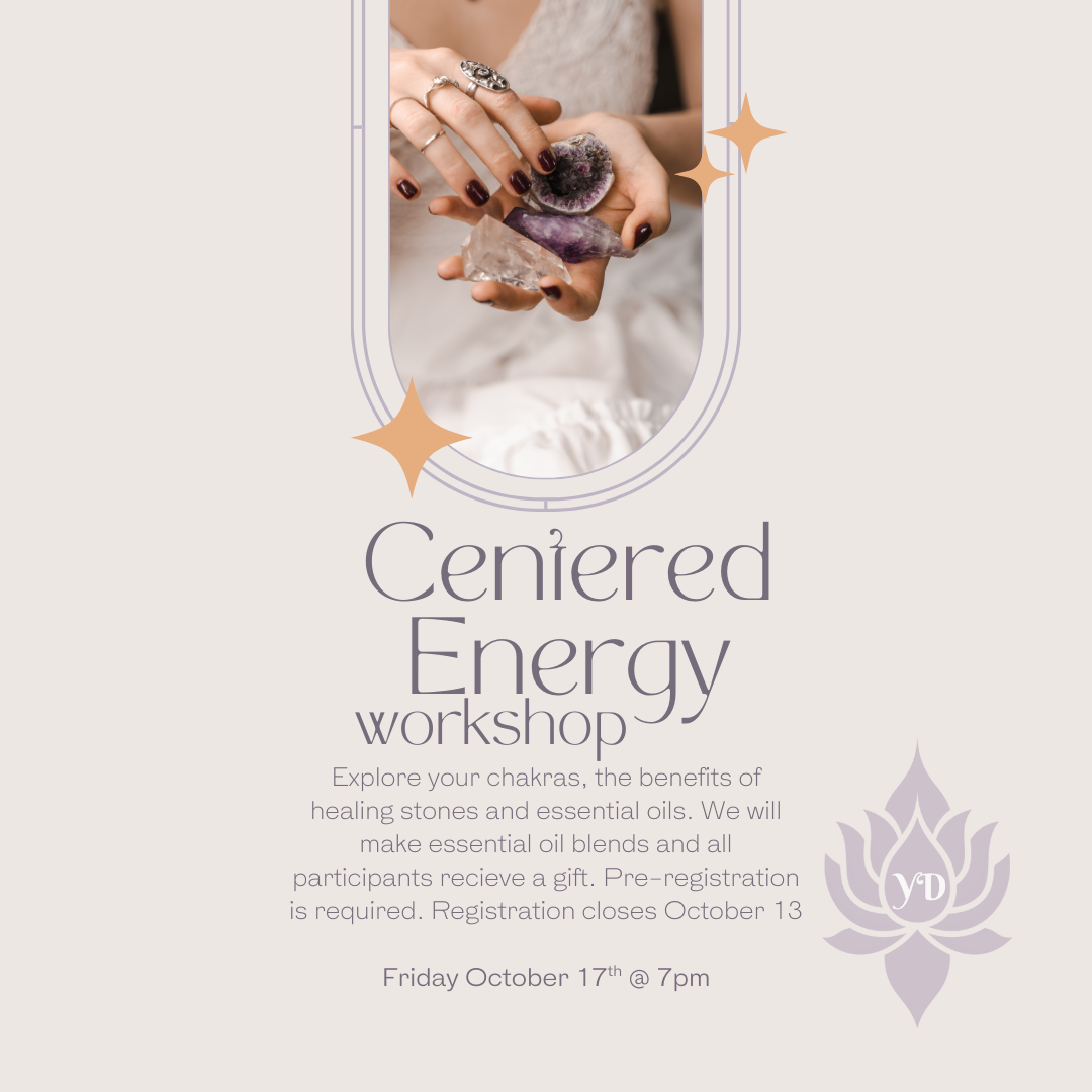 Friday October 17th @ 7pm Explore the wisdom of the chakras and learn how healing stones and essential oils can support your energy. Together we’ll make personalized essential oil blends, and each participant will receive a special gift to take home. $44 | Pre-registration required (closes October 13) October 17, 2025 7:00PM-8:00pm
