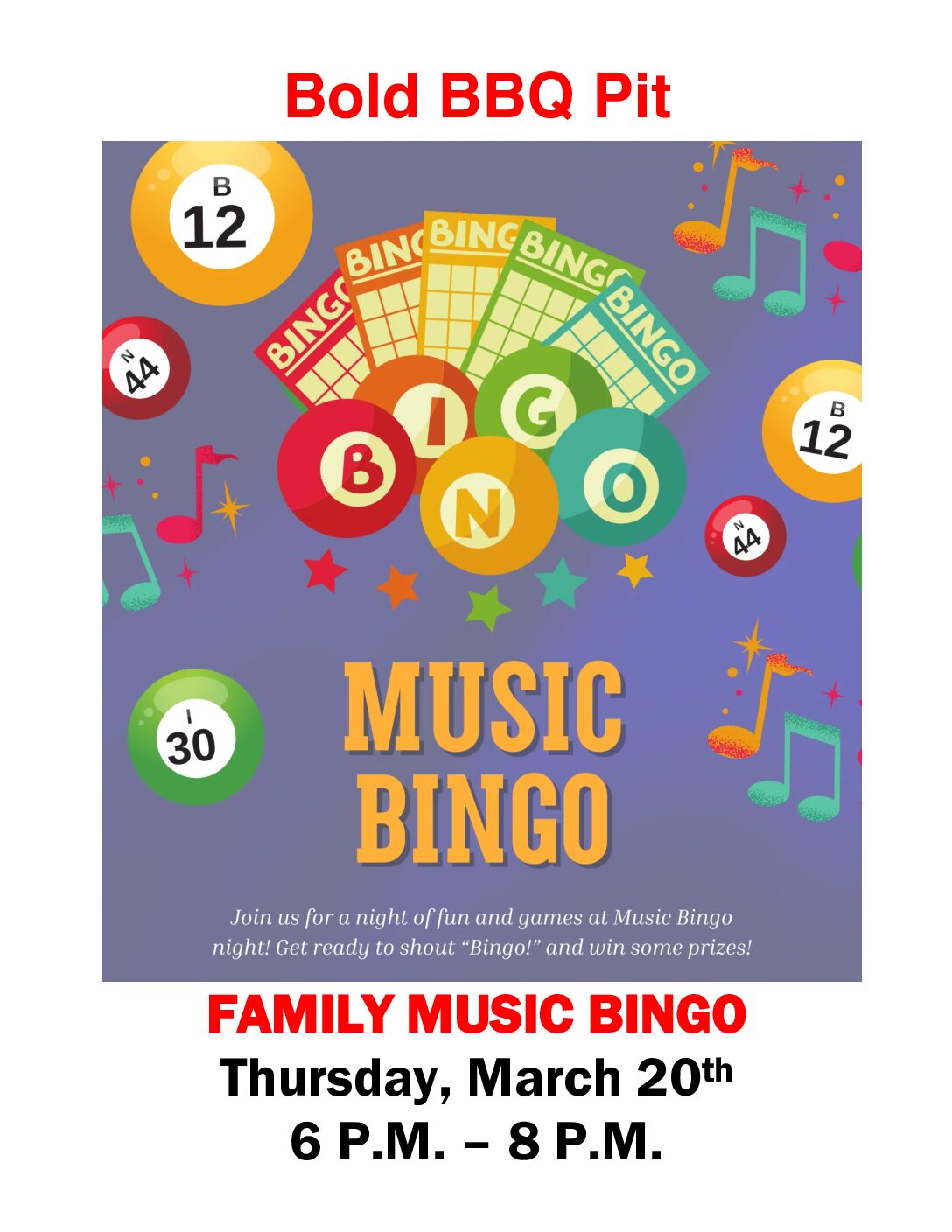 Join us for a night of fun and games at Music Bingo night! Get ready to shout "Bingo!" and win some prizes.