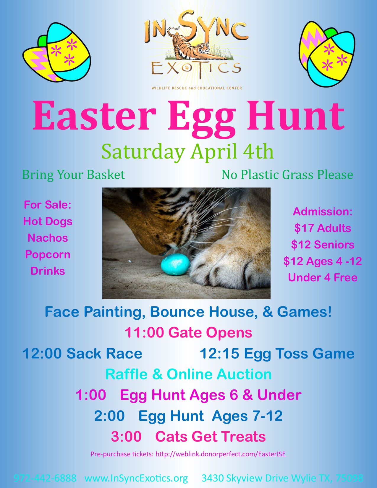 flyer for egg hunt at tiger sanctuary