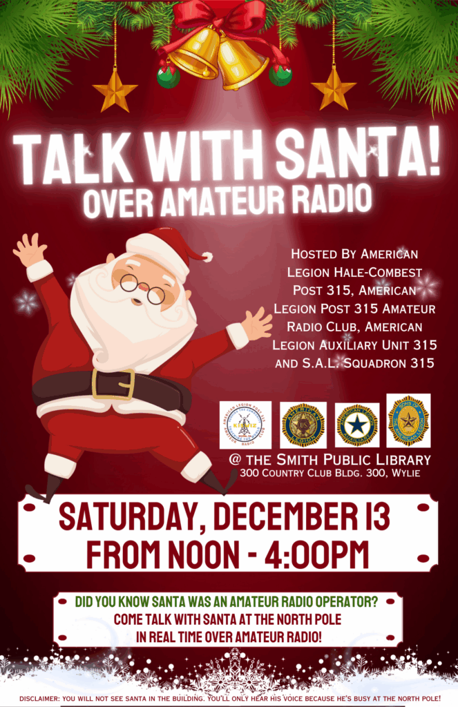 We know Santa is awfully busy this time of year, but that’s okay – he’s put some time on his schedule to chat with Wylie kids on December 13th from 12 PM until 4 PM. The Smith Public Library presents Santa on the Air, a unique experience where kids can talk with Santa in real time over the airwaves.