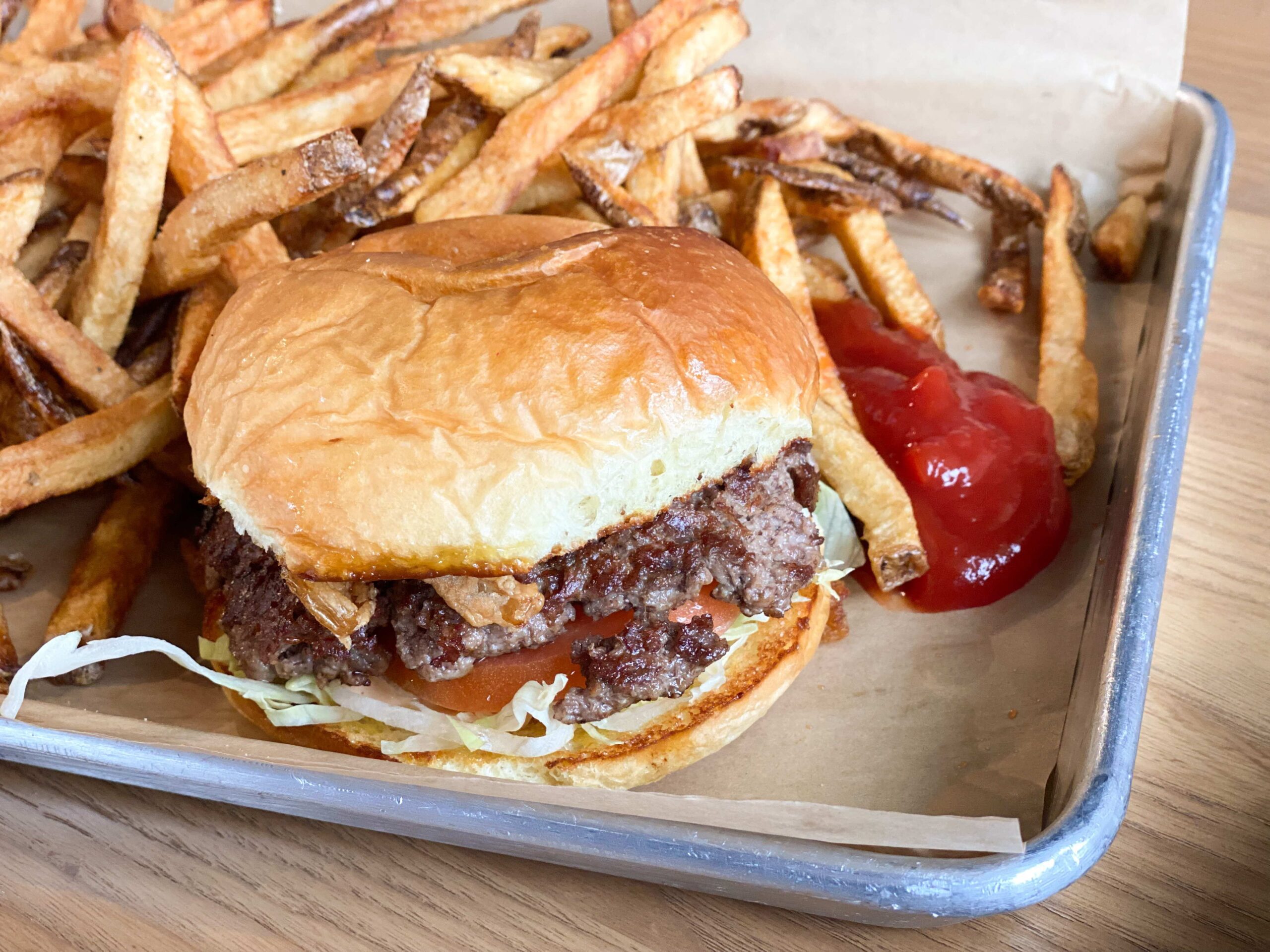 The owners of Ferah Smokehouse & Cantina know what the people want (fresh, chef-inspired, seasonal food), but they also know what the people love—and that’s a good burger. Sip on a fancy cocktail from the restaurant’s well-stocked bar while enjoying a classic, flame-grilled burger (oh, and did we mention all guests start off their dining experience with some tasty cornbread?).