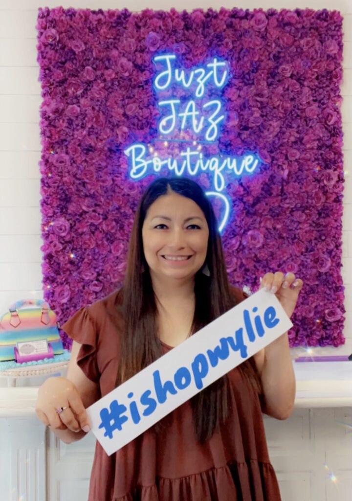 Mari says, “I am thankful and grateful that I’m able to follow my dream. Owning a boutique was something I’ve wanted for quite some time. I worked in the corporate world and a private owned business since I was 16. I started Juzt JAZ Boutique in a small booth in 2019 inside the Rustic Warehouse in Rockwall. In March of 2021 a small space opened up inside a historic home in downtown Wylie that had other businesses as well. In November of 2021 I moved into a beautiful space in the center of historic downtown Wylie. A dream come true. I’ve loved every moment of owning my Boutique and strive to continue to grow the business.”